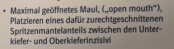 Desweiteren möchte ich einige kritische Worte zur hier demonstrierten Lagerung äußern, da die im Text gegebene Empfehlung den Fang zu öffnen den größten Vorteil dieser speziellen Positionierung zum Teil zunichte macht – eben eine möglichst optimale Darstellung der Oberkieferbackenzähne.